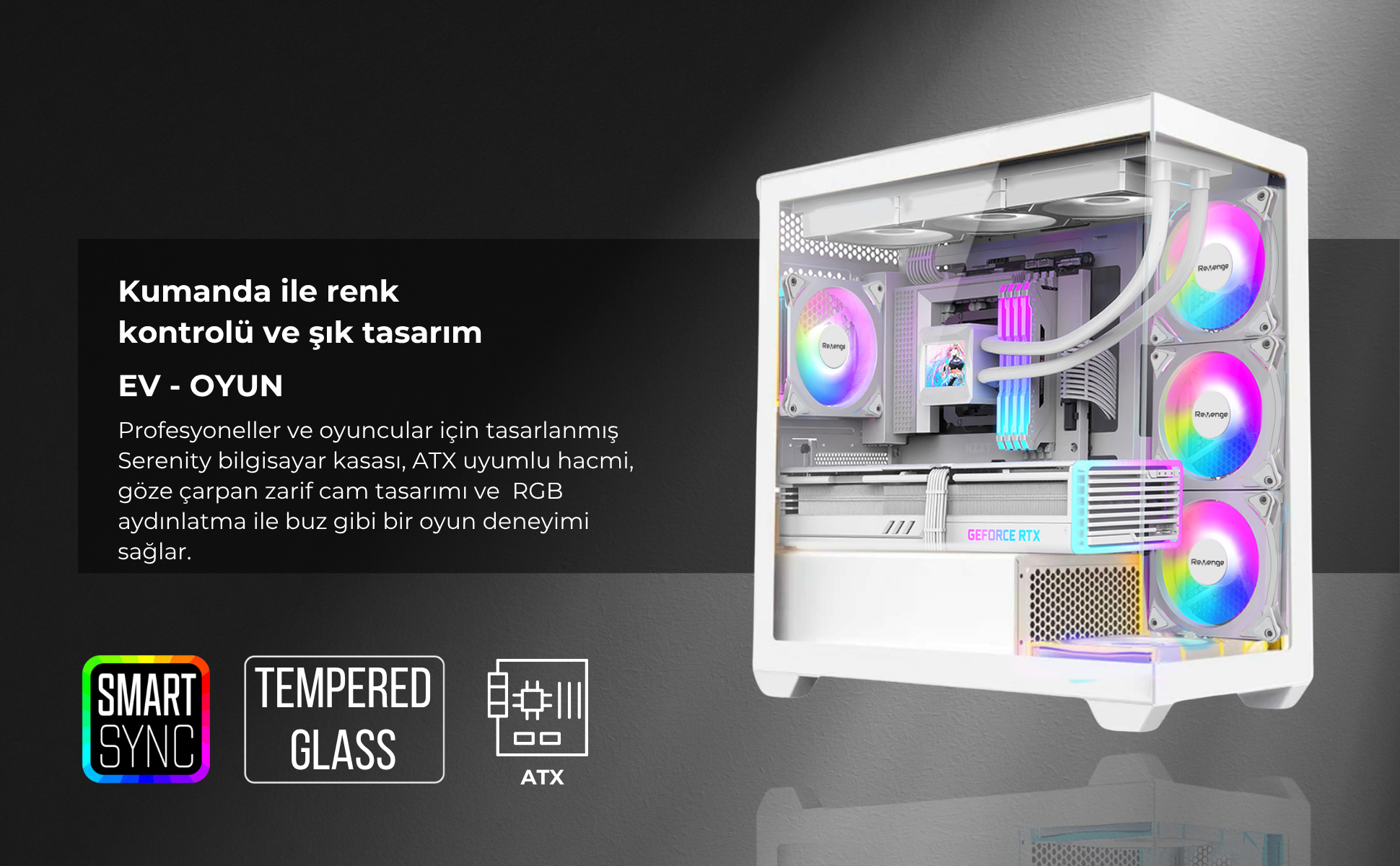 Serenity V2 Beyaz Midi Tower 4 RGB Fanlı Temperli Cam Panel Gaming Oyuncu Bilgisayar Kasası