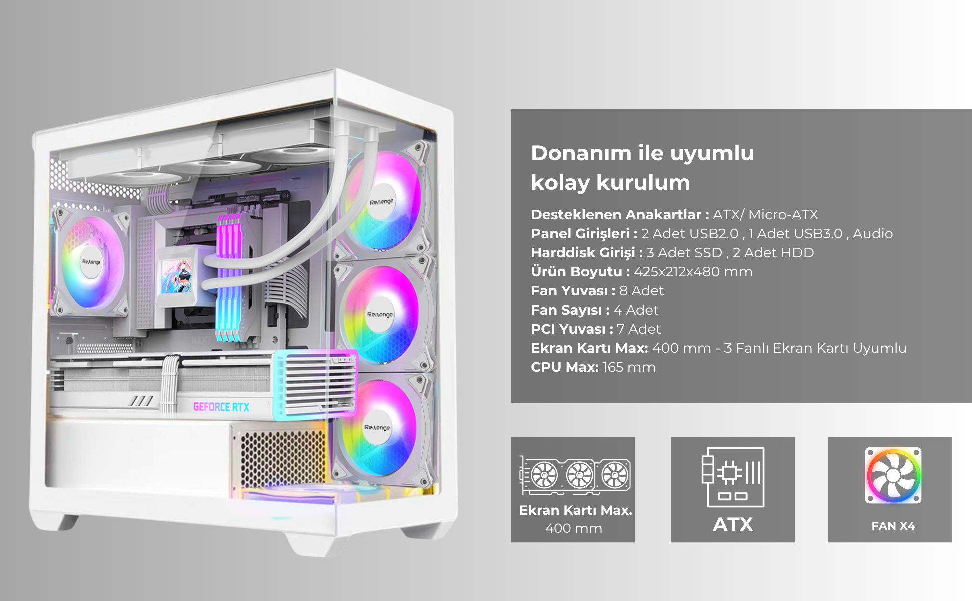Desteklenen Anakartlar : ATX/ Micro-ATX